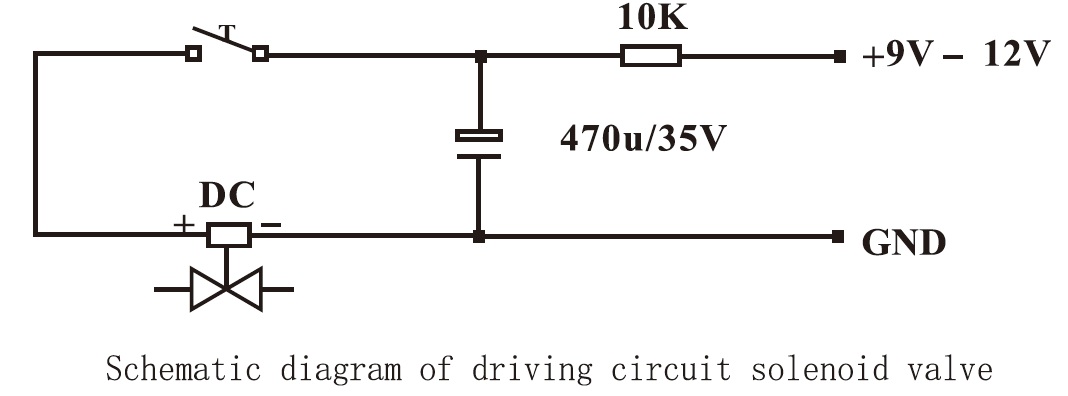 ① подайте мгновенный импульс постоянного тока (DC9~12V) на катушку соленоида, и клапан быстро закроется;